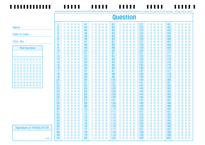Answer sheet_200 quesetion  : A4/single-sided/200 question