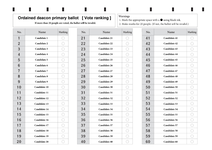 Ballot 60 candidates  : A4/single-sided