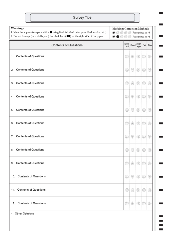 Questionnaire template 12 items  : A4/single-sided