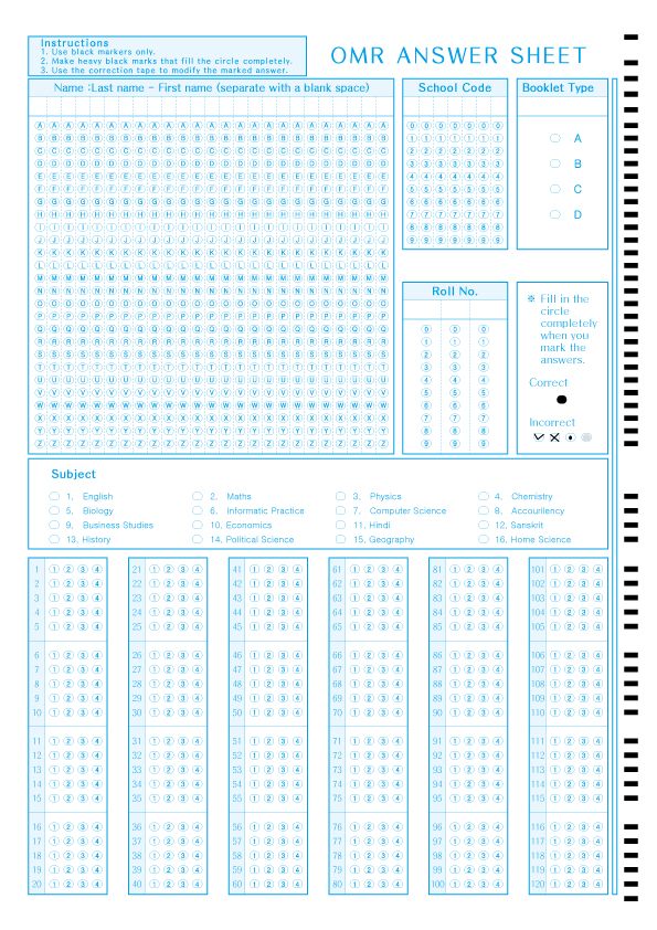 Answer sheet_120 quesetion(Type1)  : A4/single-sided