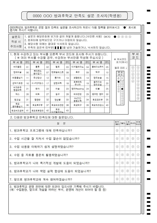 방과후학교 만족도 설문_학생용  : A4/단면