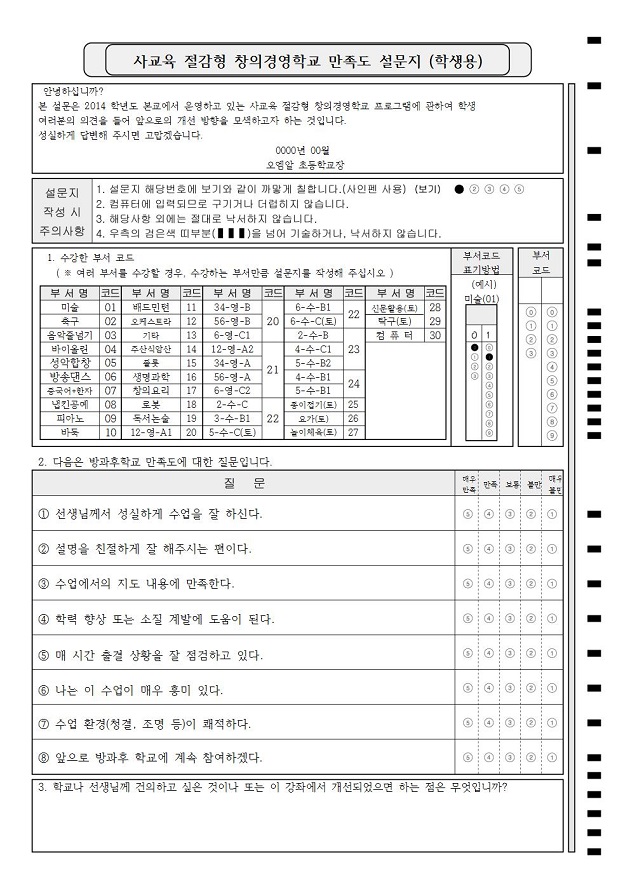 사교육 절감형 창의경영학교 만족도 설문_학생용  : A4/단면
