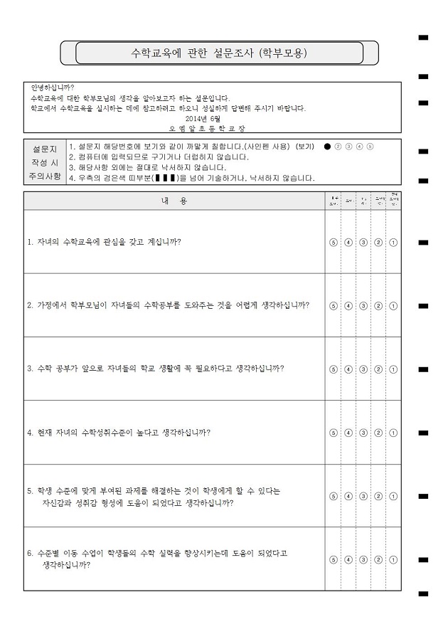 수학교육에 관한 설문조사_학부모용  : A4/단면
