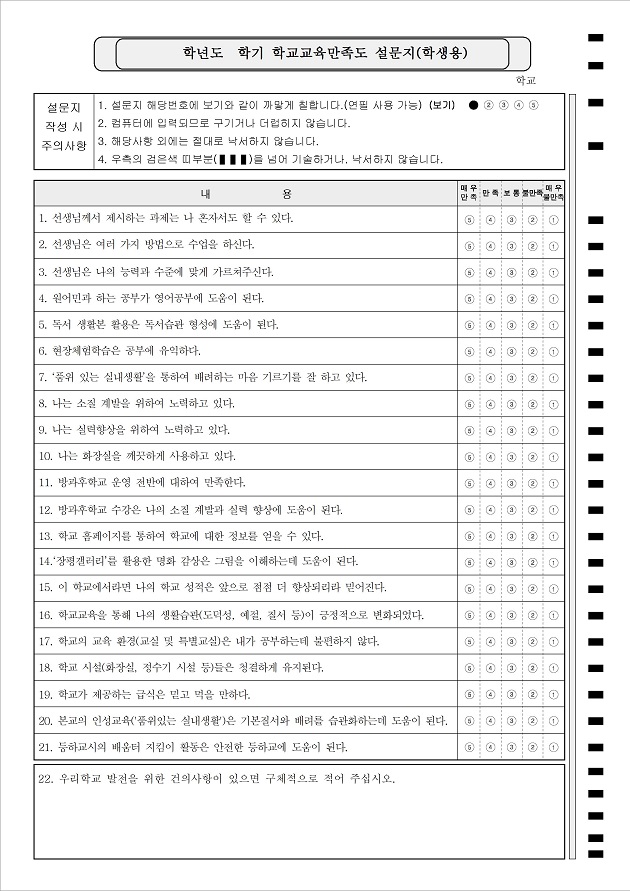 학교교육만족도 설문_학생용  : A4/단면