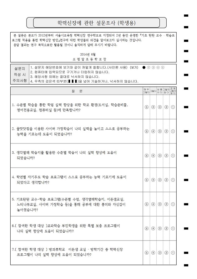 학력신장에 관한 설문조사_학생용  : A4/단면
