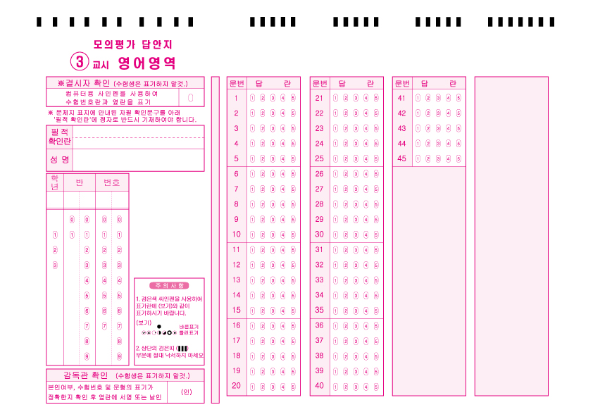 모의고사 답안지 3교시  : A4/단면