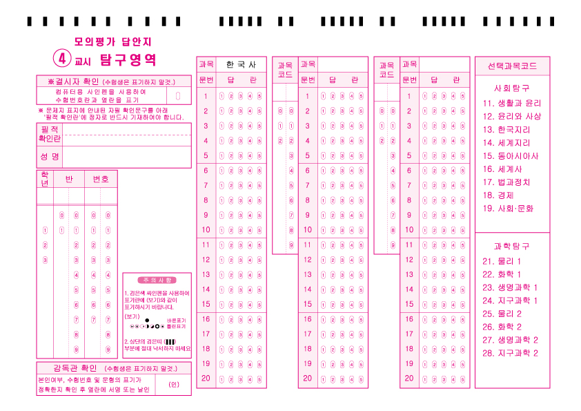 모의고사 답안지 4교시  : A4/단면
