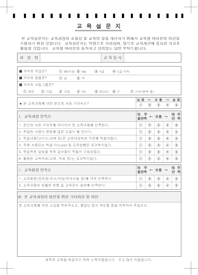 교육설문지  : A4/단면