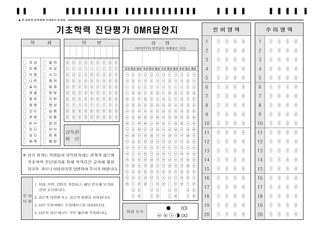 신입생기초학력진단평가  : A4/단면