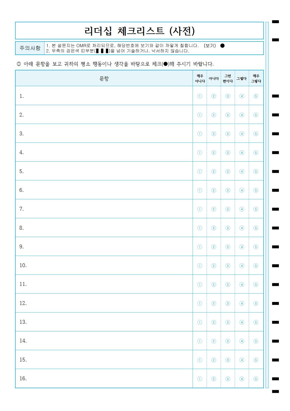 리더십 체크리스트  : A4/단면/16문항/5지선다