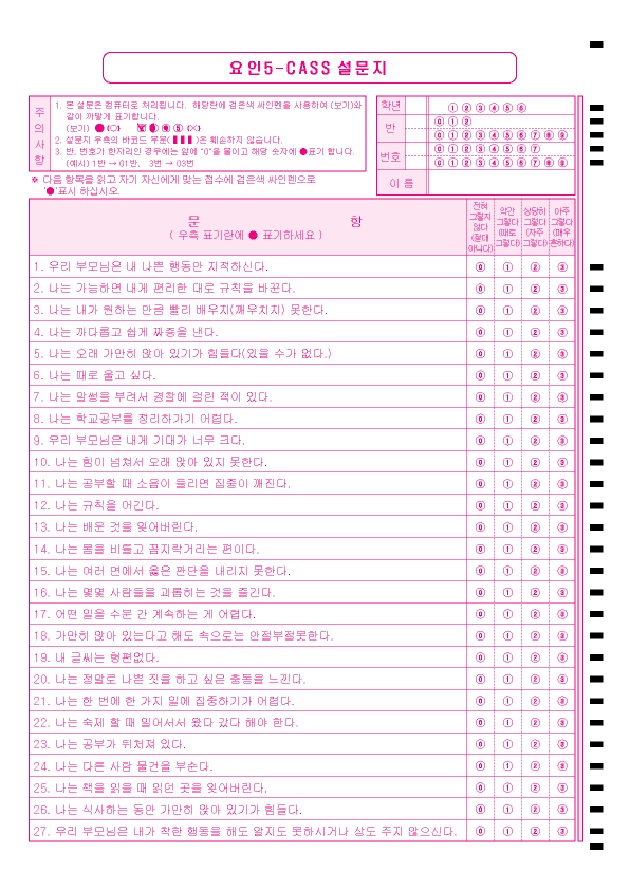 CASS(자기보고형검사)-중학생용  : A4/단면/27문항/4지선다