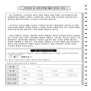 근로시간 및 유연근무에 대한 인식조 조사(2페이지)  : A4/양면/26문항/5지선다