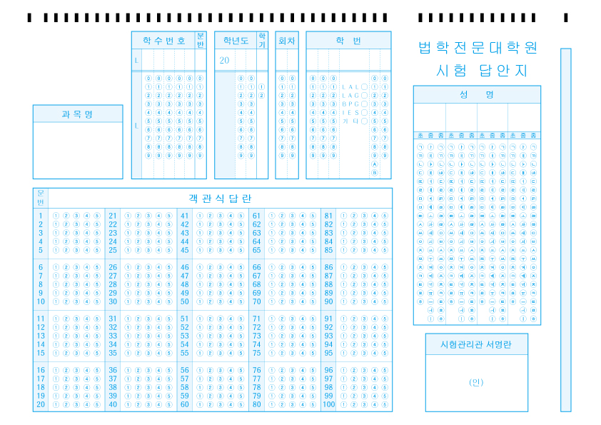 법학전문대학원 답안지  : A4/단면/100문항/5지선다