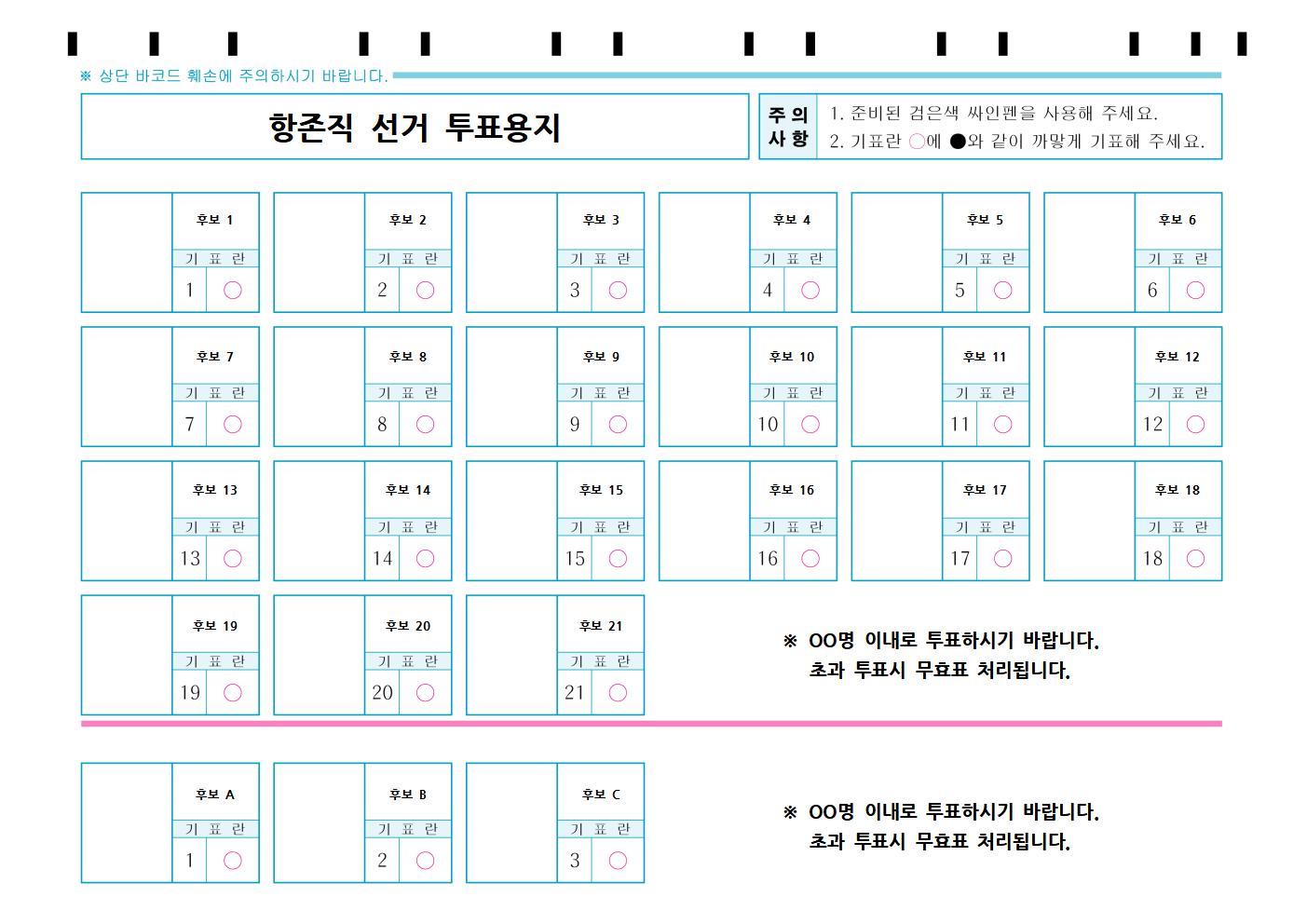투표용지_21,3명(2직분용,사진첨부,3명직분만판독가능)  : A4/단면/후보21,3명(2직분)-3명만 판독가능/사진첨부