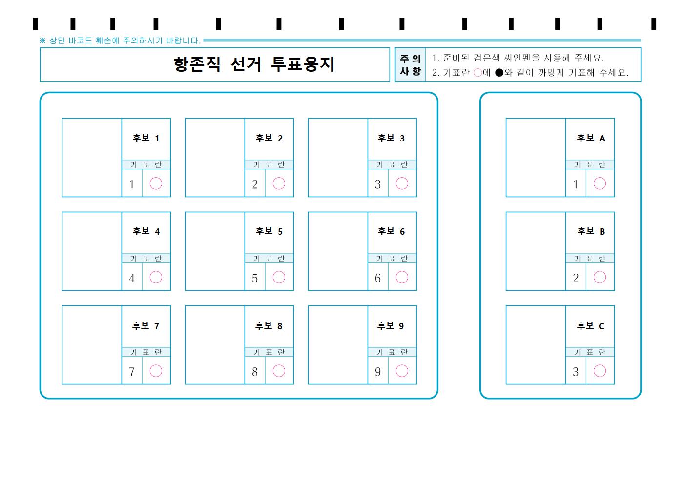 투표용지_9,3명(우측직분만 판독가능)  : A4/단면/후보9,3명-우측직분만 판독가능