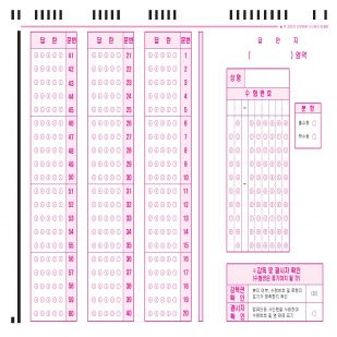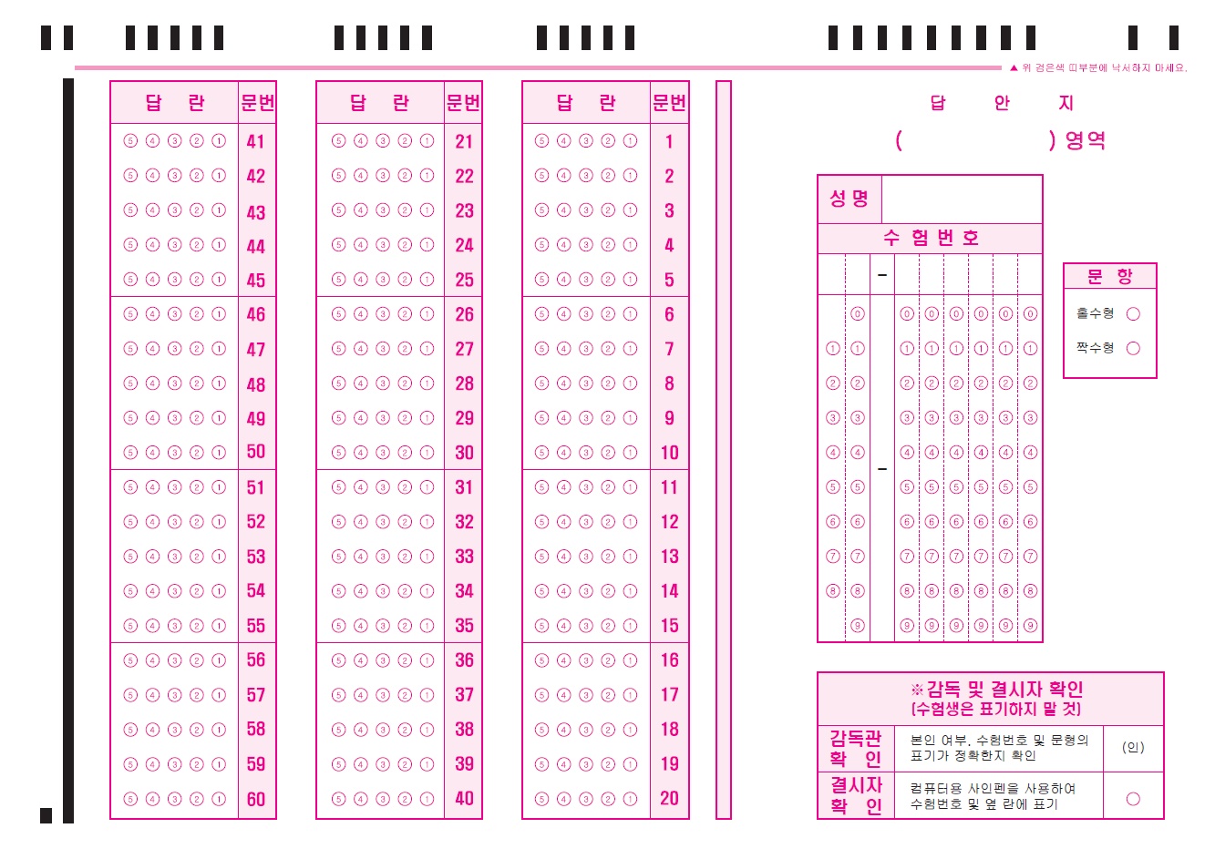 왼손잡이용 OMR카드-1  : A4/단면/60문항/5지선다/왼손잡이용