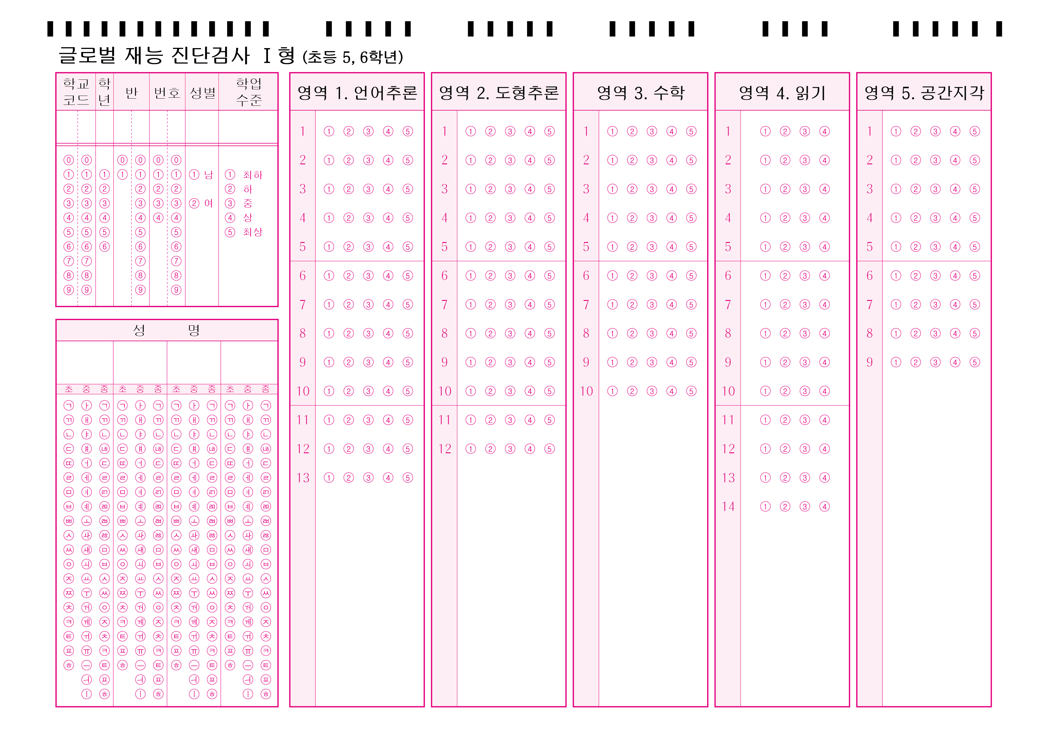 글로벌재능진단검사_1형(초등5,6학년)  : A4 /단면 /5개유형/ 4-5지선다
