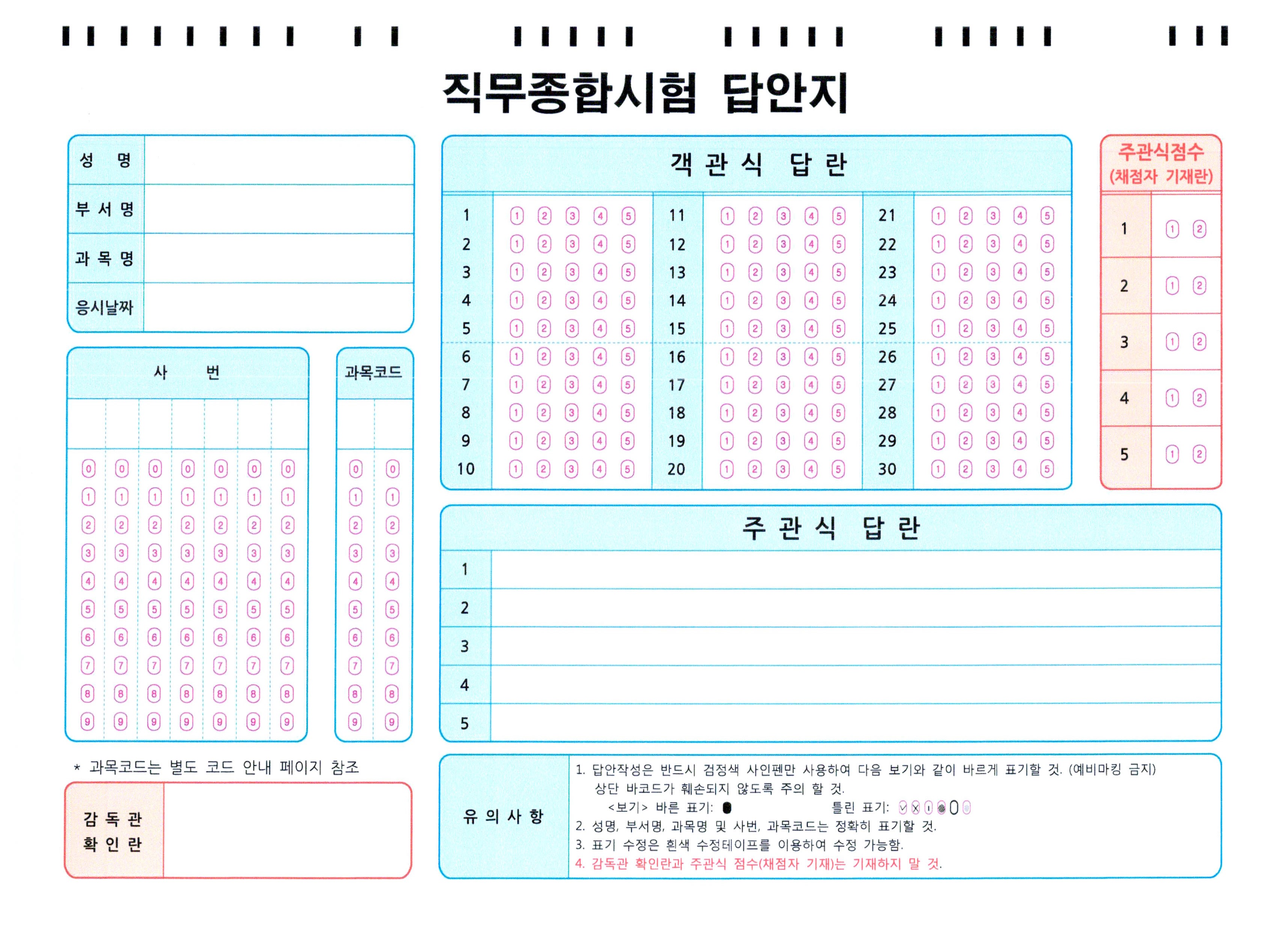 직무종합시험 답안지