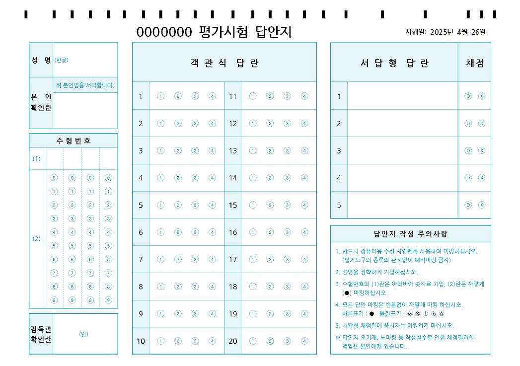 Home > 온라인판독 >기업/관공서 > 평가 답안지