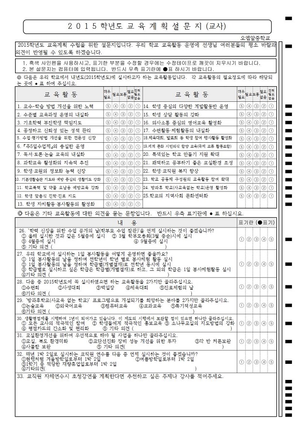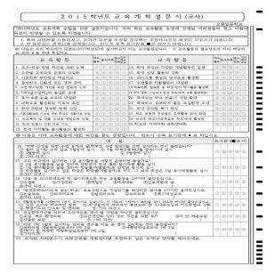 교육계획설문지(교사용)  : A4/단면/총33문항/5지선다