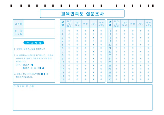 교육 만족도 설문 조사  : A4/단면/30문항/4지선다