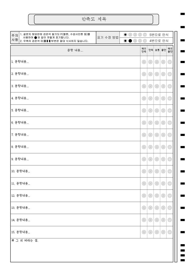 15문항 설문  : A4/단면/15문항/5지선다