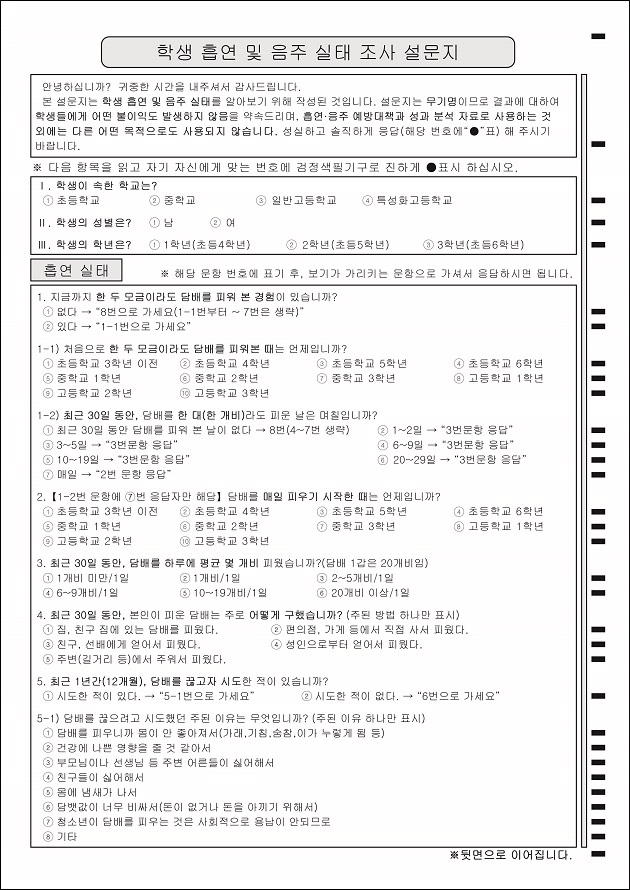 학생흡연음주실태조사-2페이지  : A4/양면/23문항/2~10지선다