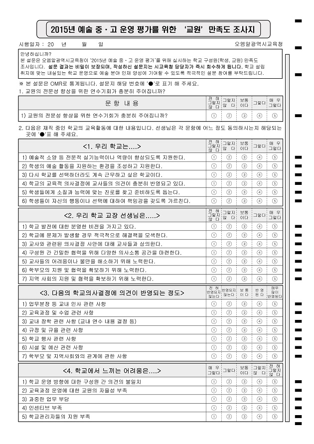 교원만족도조사(교육청)  : A4/단면/26문항/5지선다