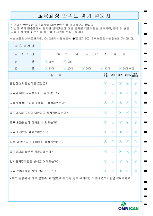 교육과정만족도  : A4/단면/12문항/2~5지선다
