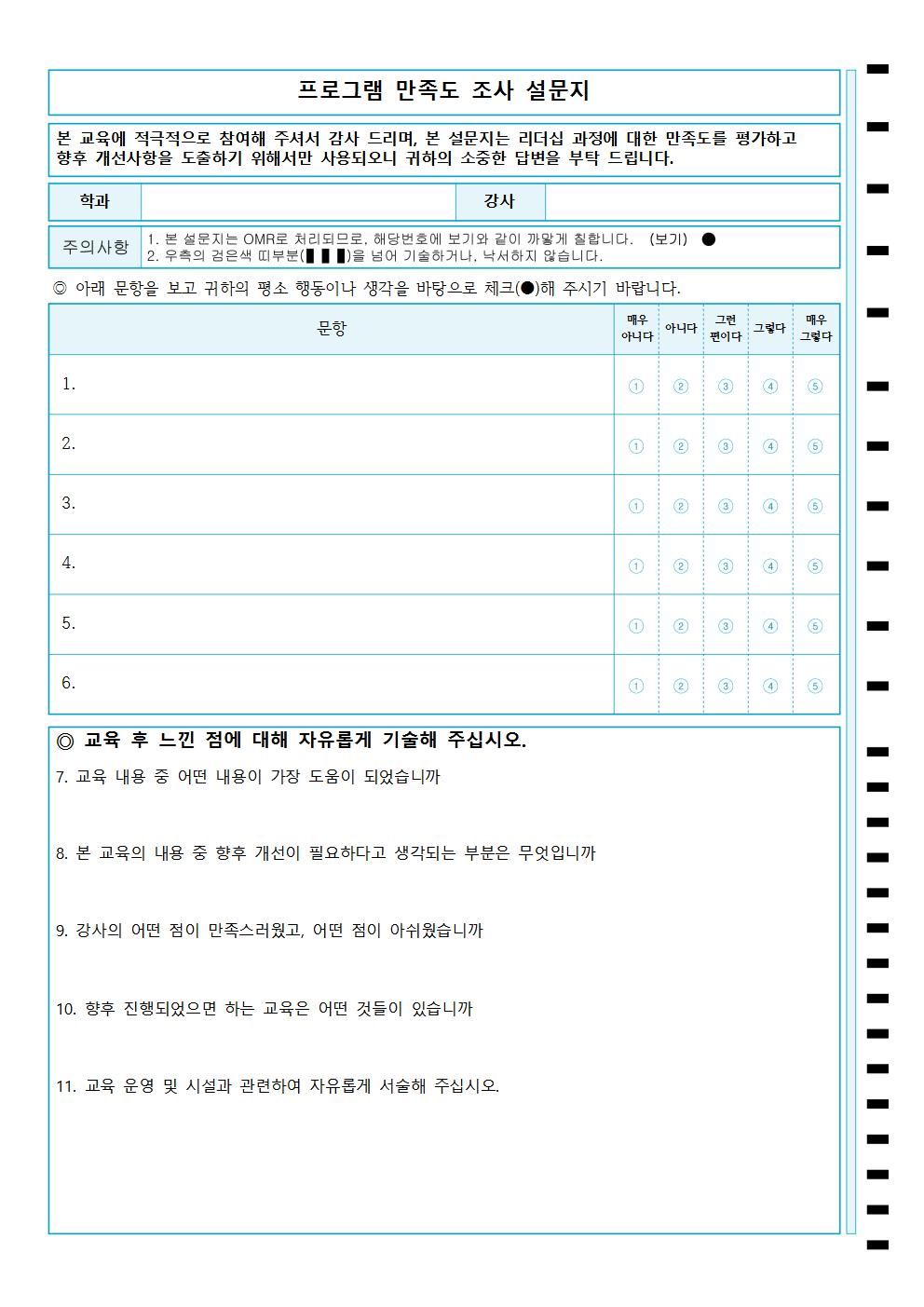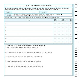 프로그램 만족도 조사  : A4/단면/6문항/5지선다/주관식