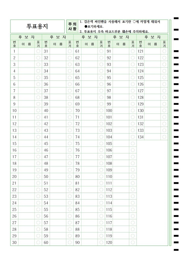 투표용지_134명  : A4/단면/후보134명