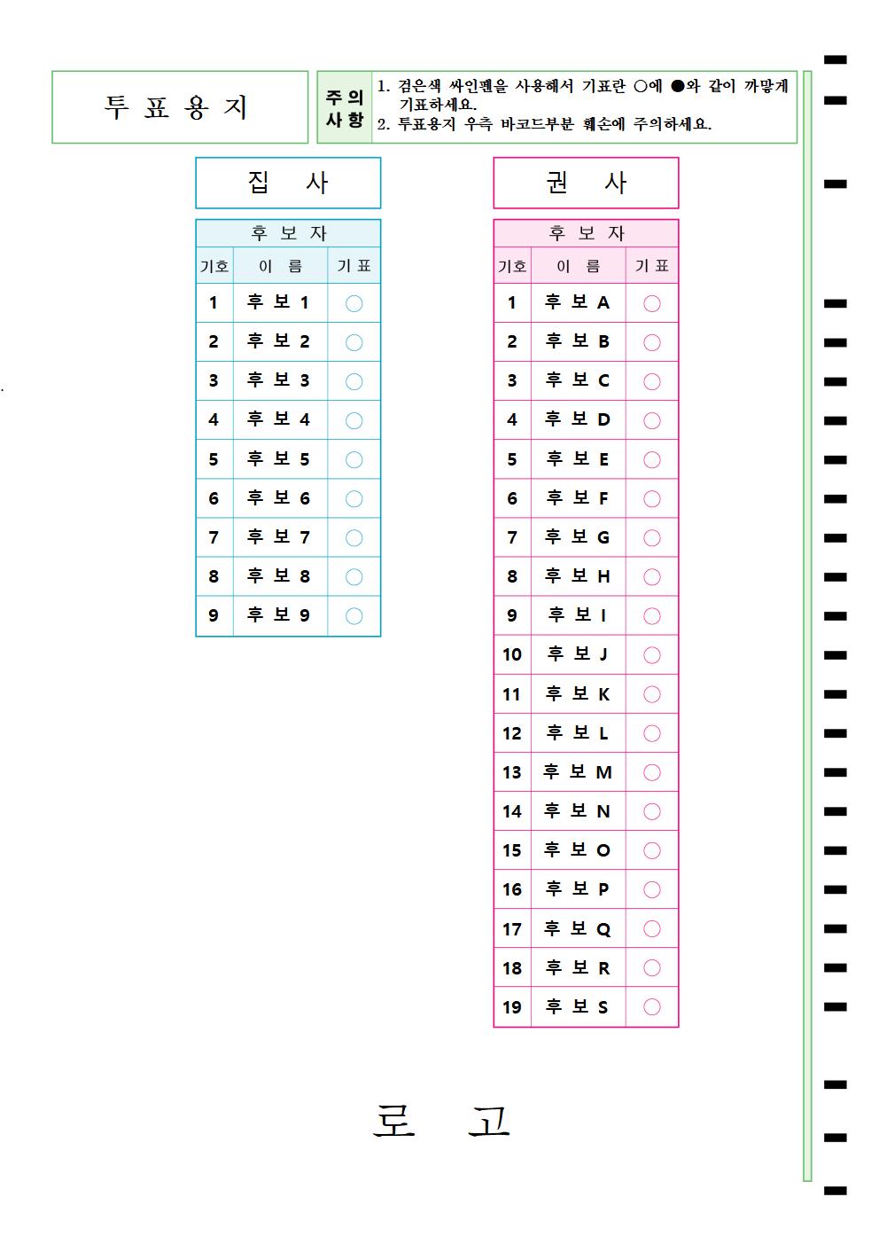 투표용지_9명,19명(19명직분만 판독가능)  : A4/단면/후보9명,19명-19명직분만 판독가능