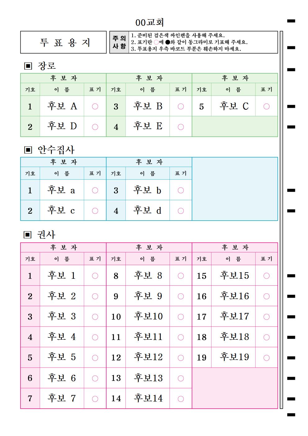 투표용지_5,4,19명(3직분용,사진첨부,19명직분만 판독가능)  : A4/단면/후보5,4,19명-19명직분만 판독가능