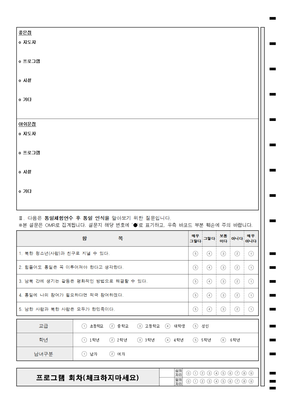 통일체험연수(3 of 3)  : A4/3페이지/55문항(서술형2문항 포함)/2~5지선다