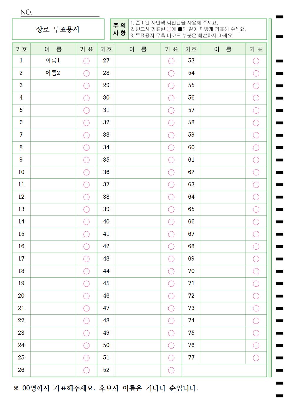 투표용지_77명  : A4/단면/후보77명