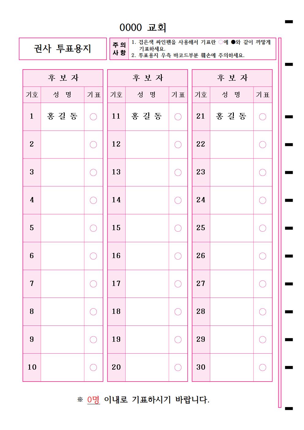 투표용지_30명  : A4/단면/후보30명