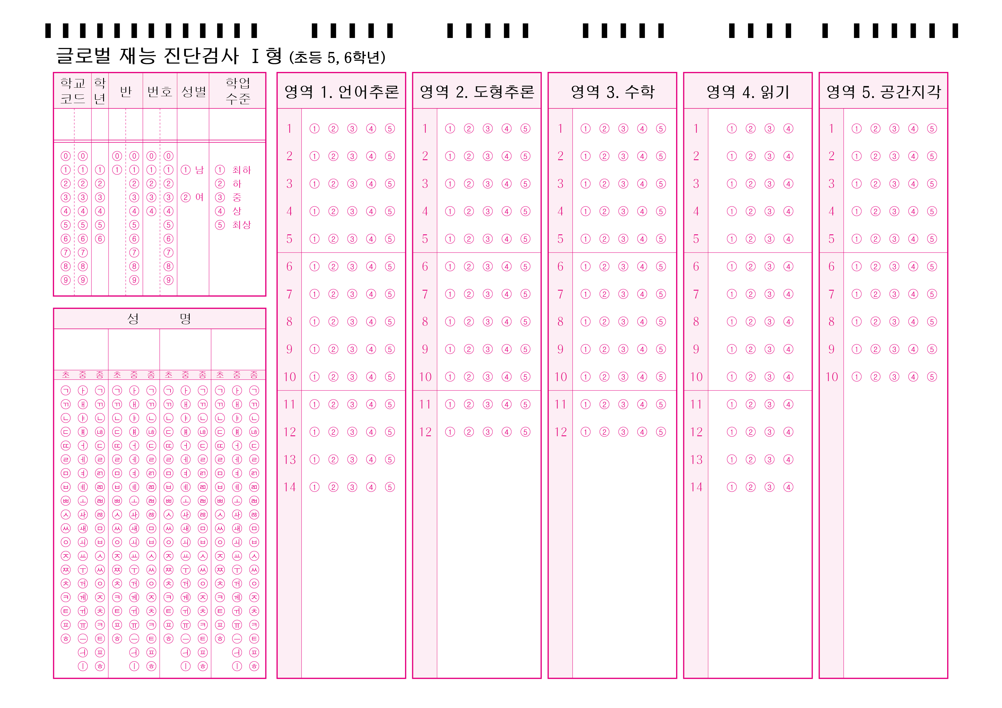 글로벌재능진단검사_1형  : A4 /단면 /5개영역/ 5지선다