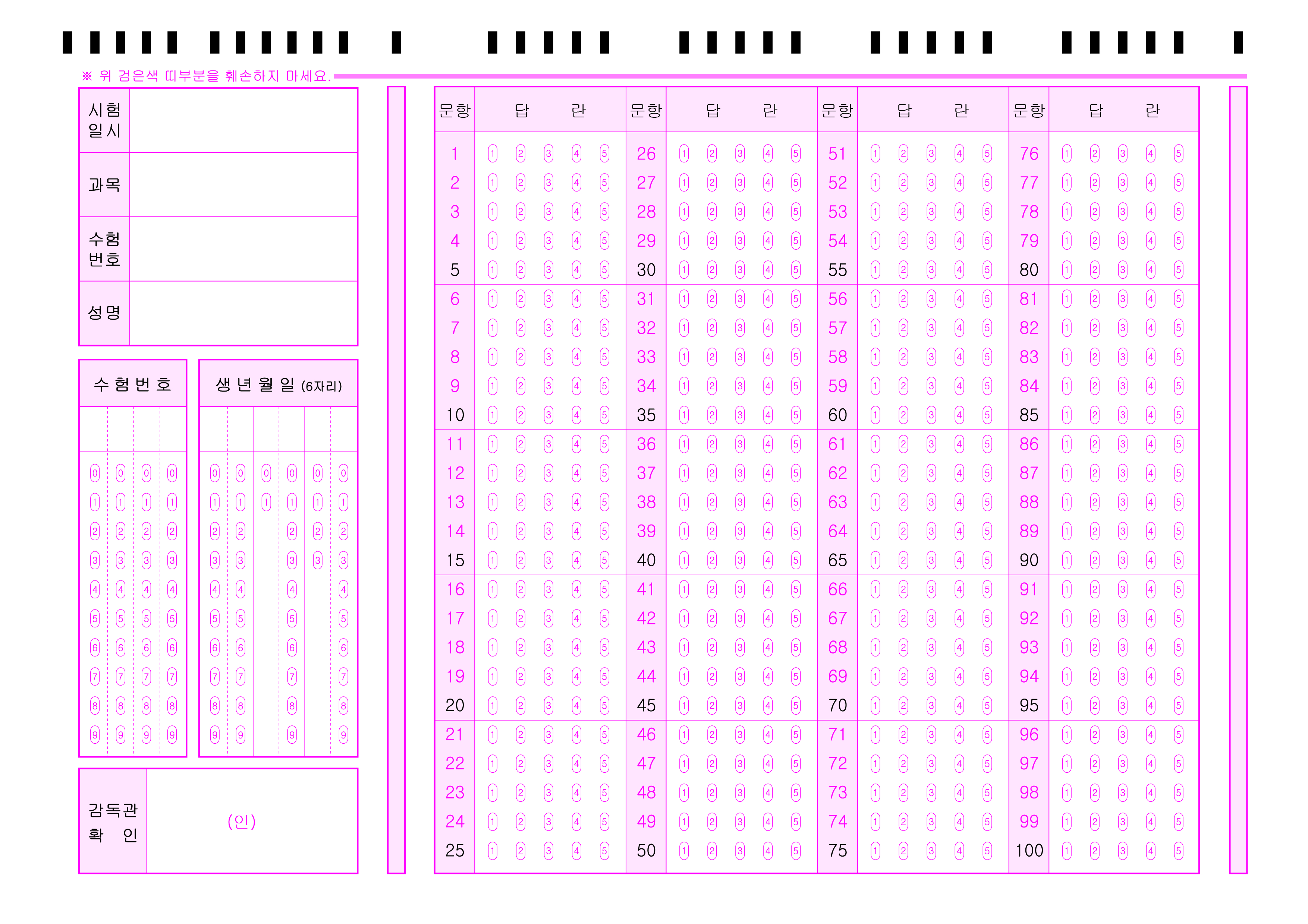 민간자격시험_100문항_5지선다  : A4/단면/100문항/5지선다