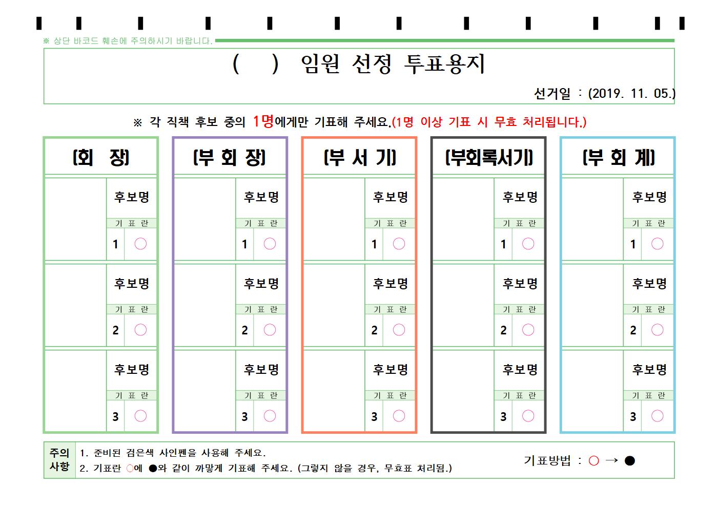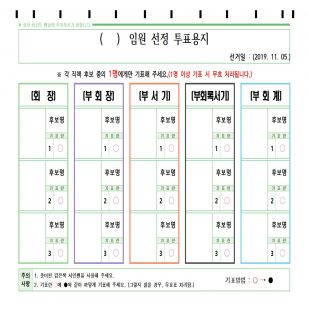 임원선정투표용지  : A4/단면/6직책 각 후보3명