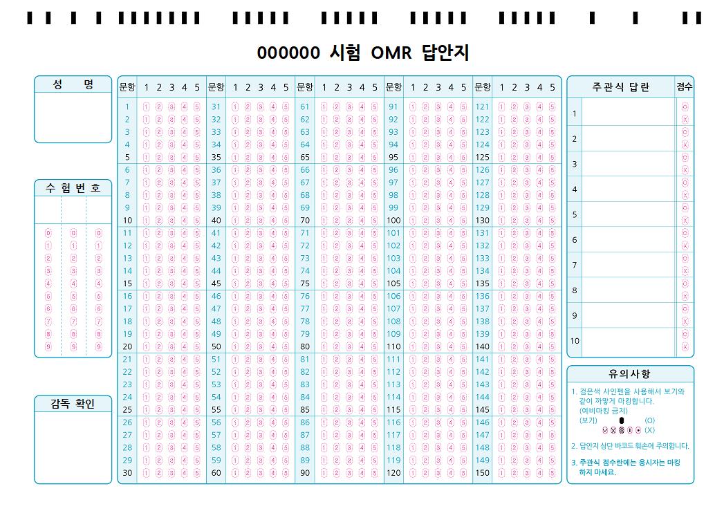 OMR_150문항_10문항_A4.hwp (966.0Kbyte)  [4]  DATE : 0000-00-00 00:00:00