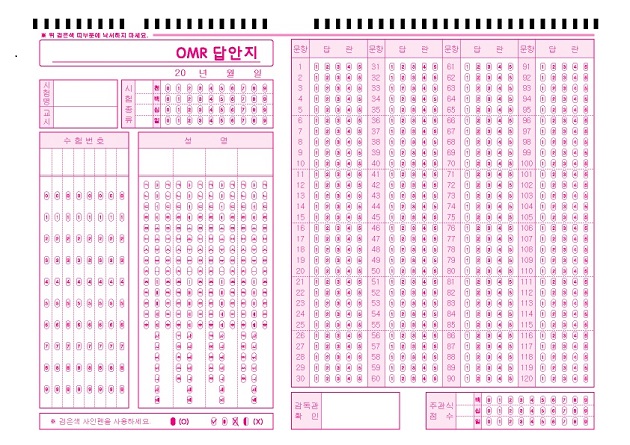 대학객관식 시험 답안지_120문항  : A4/단면/120문항/5지선다