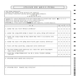 수학교육에 관한 설문조사(학생용)  : A4/단면/7문항/5지선다