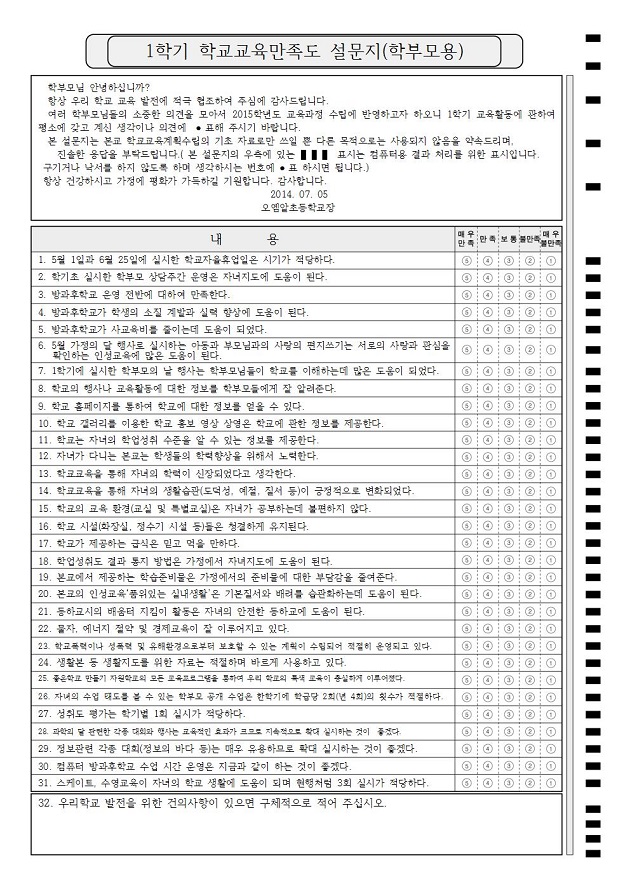 학교교육만족도 설문2(학부모용)  : A4/단면/32문항/5지선다