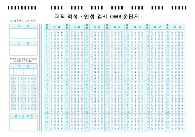 교직 인적성 검사 답안지  : A4/단면/210문항/4지선다
