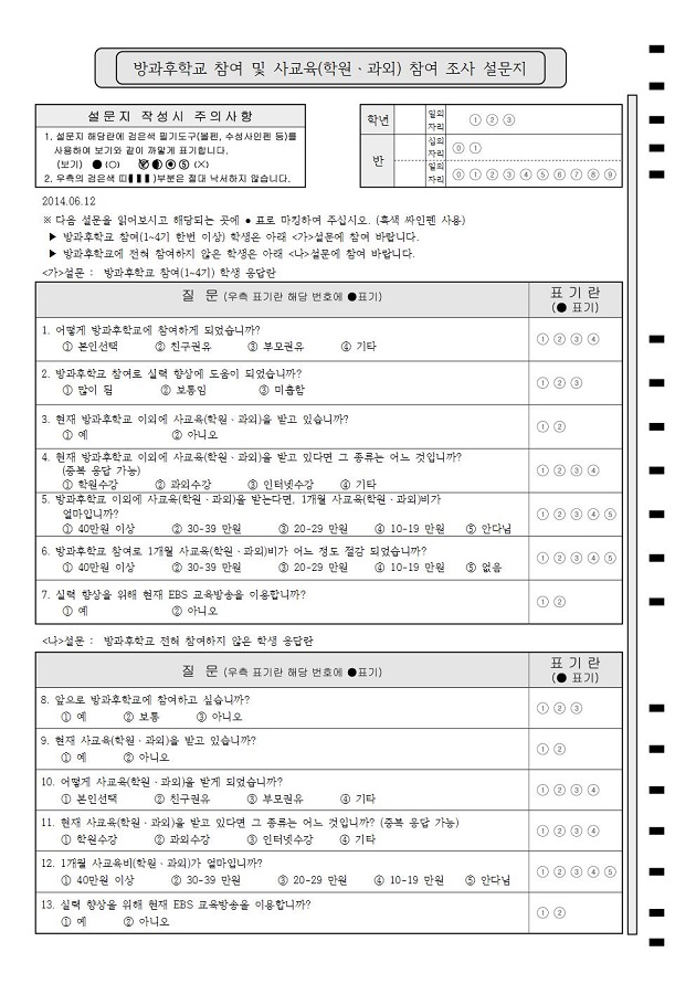 방과후학교 참여 및 사교육참여 조사 설문 테스트용지.zip (1.4Mbyte)  [5]  DATE : 2014-07-27 22:24:58