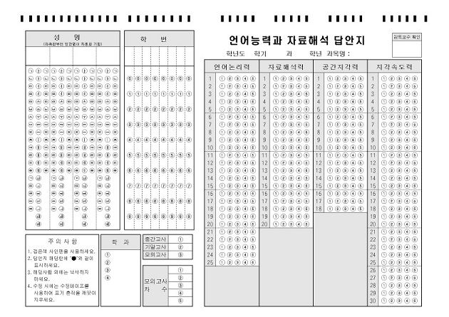 언어능력과 자료해석 답안지  : A4/단면/93문항/5지선다