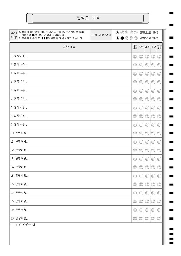 20문항 설문  : A4/단면/20문항/5지선다