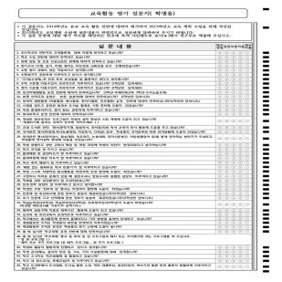 교육활동 평가 설문(학생용)-2페이지  : A4/2면/60문항/3~5지선다
