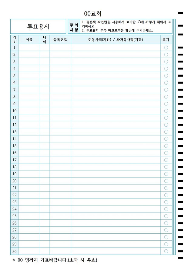 투표용지_30명  : A4/단면/후보30명/후보당 세부내역